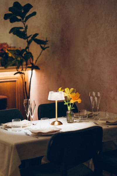 Пространство ресторана — камерное и многослойное. Архитектурную концепцию создавали в сотрудничестве с местной студией Artisan. Интерьер многократно пересматривался — вплоть до цвета стен: трижды перерисовывались эскизы, пока не нашли «правильный тон».