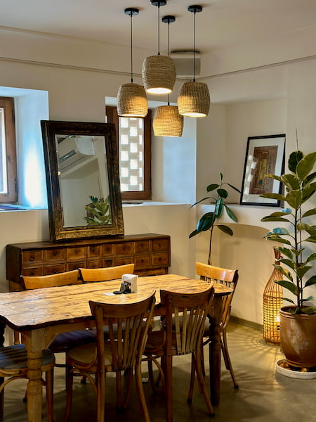 Keryas соседствует с мечетью имама — буквально в двух шагах. Так близко, что, по словам хозяев, “человек мог выходить из дома и идти прямо к Аллаху — и возвращаться в тишину своего внутреннего сада”.
