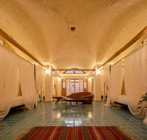 «Зал и зона завтрака — новодел, но мы старались сохранить единство с исторической частью дома, который когда-то служил жильём для слуг и имел большую систему водоснабжения с бассейном. Это дом с несколькими эпохами — в отеле можно найти черты и эпохи Сефевидов, Афшаридов и даже более поздних времён» – рассказывает она.