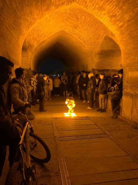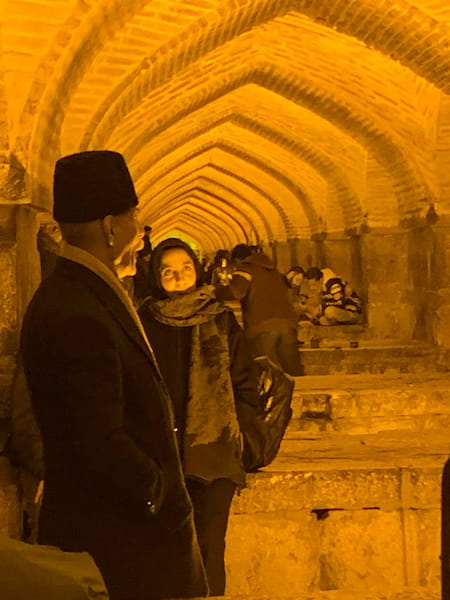 — Мы прогулялись по мостам Ходжу и Си-о-се-поль через реку Заяндеруд, точнее, через ее русло. Река в русле не всегда – это происходит, к сожалению, раз в год. Гулять по мостам надо вечером, когда они подсвечиваются и любоваться отражениями арок в воде, а под арками Ходжу собираются люди, чтобы петь иранские песни;